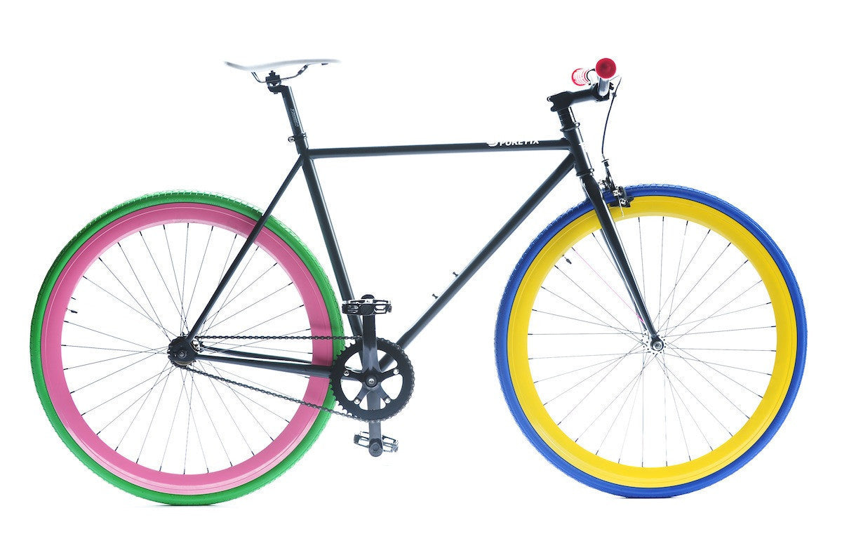 This limited edition bike comes with a little bit of color for everyone! We start with a crisp and clean matte black frame. Then it's all-color-everything. Ya like blue? Got it. Red? Sure thing. Yellow? Duh! Pink? Obviously! Don't wait, these won't be around for long!