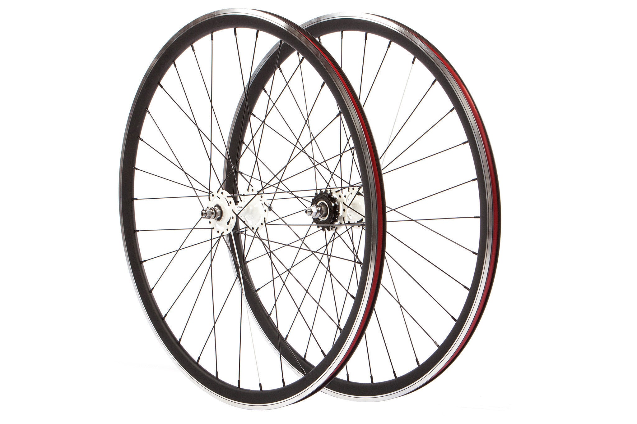 Our rear wheels include flip-flop hubs with a pre-attached 16T fixed cog, along with a 16T freewheel cog for single-speed riding. Front and rear wheels have 32 spokes each and all wheelsets include nylon rim-strips to protect against sharp edges and prevent tube puncture.